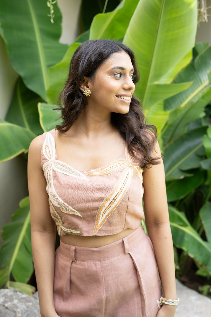 Versatile enough to pair with linen trousers, skirts, or shorts, the Beach Sand Top belongs in every premium vacation wardrobe, bringing comfort and elegance.