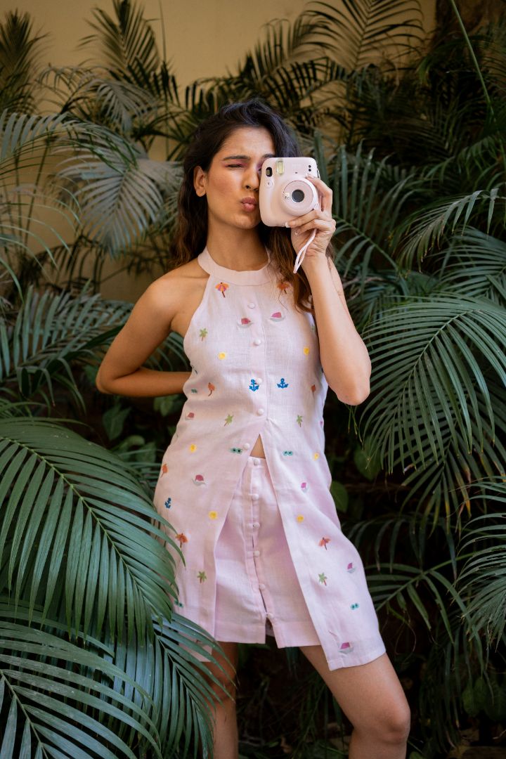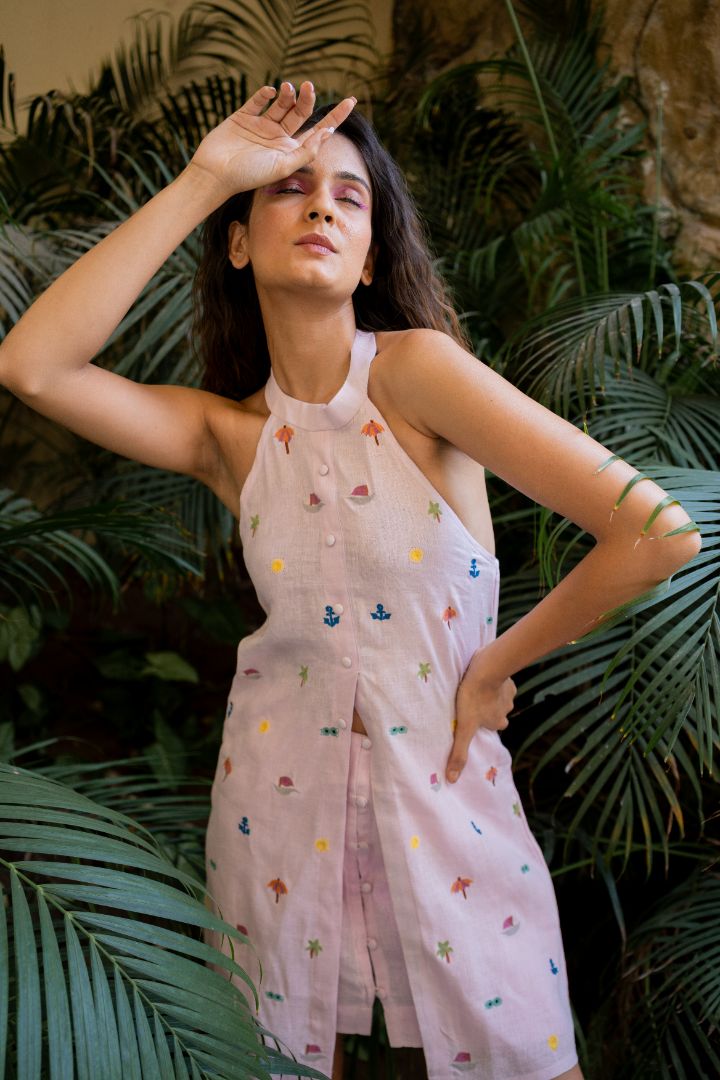Turn heads this season with the Summer Halter Dress by Orange at Eight, crafted from breathable pure linen and detailed with delicate beach-inspired motifs. A signature piece from our premium vacation wear collection, this dress is designed for sun-soaked days, seaside escapes, and elevated resort living.